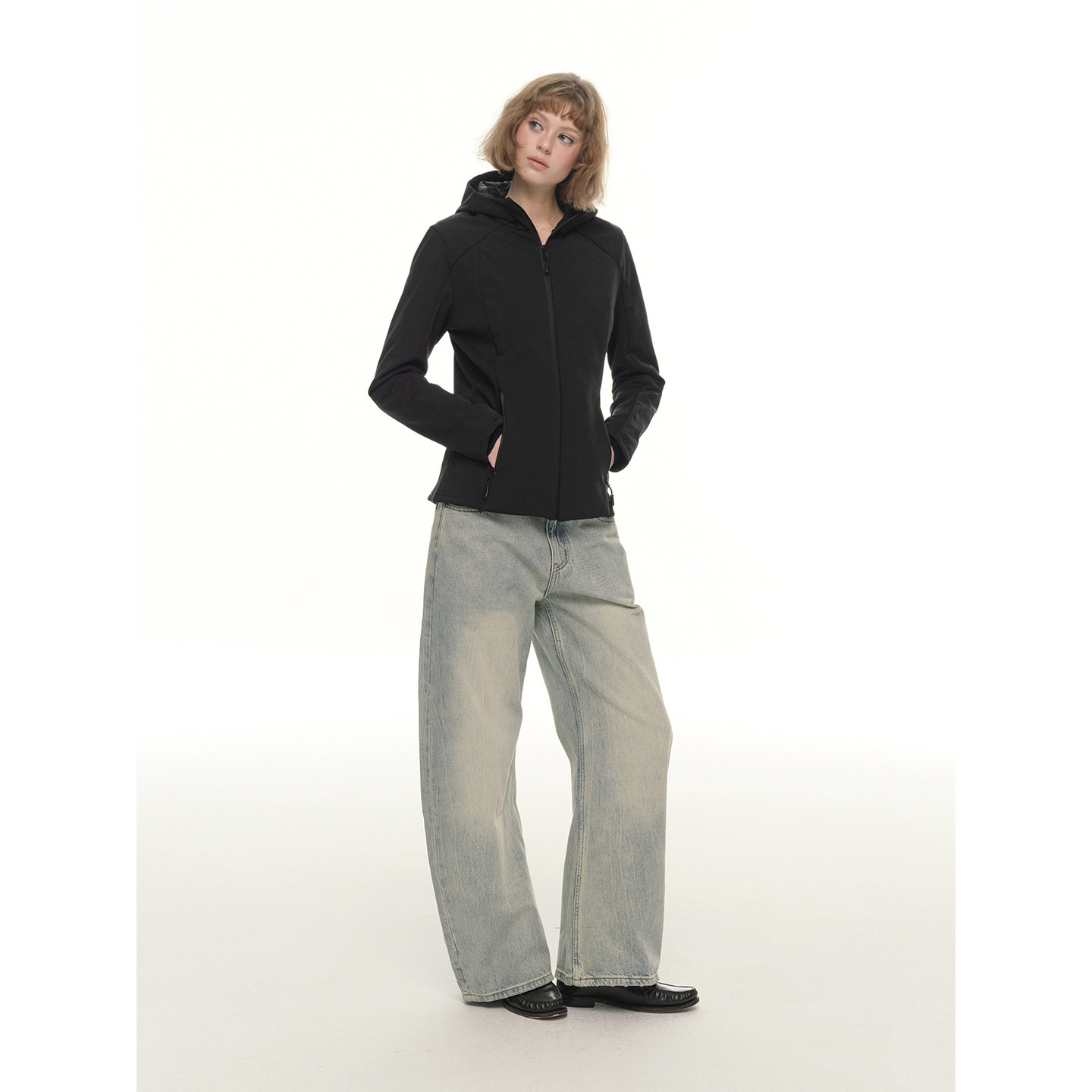 UNRETRO 秀出小蛮腰 三防拼接短款羽绒服女冬修身保暖冲锋衣外套