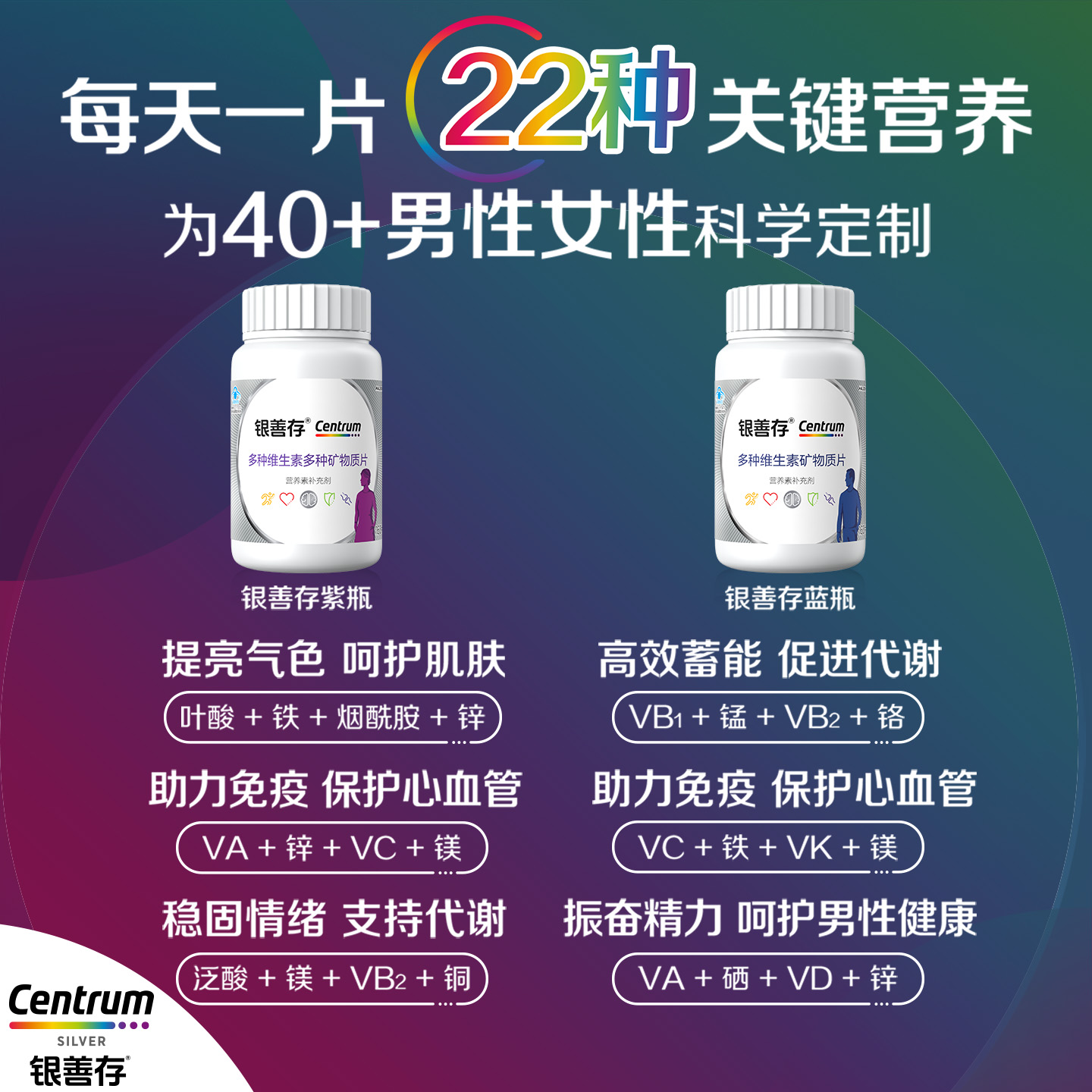 【秒杀】银善存中老年女士多种维生素复合片22种营养b族钙维c锌ve