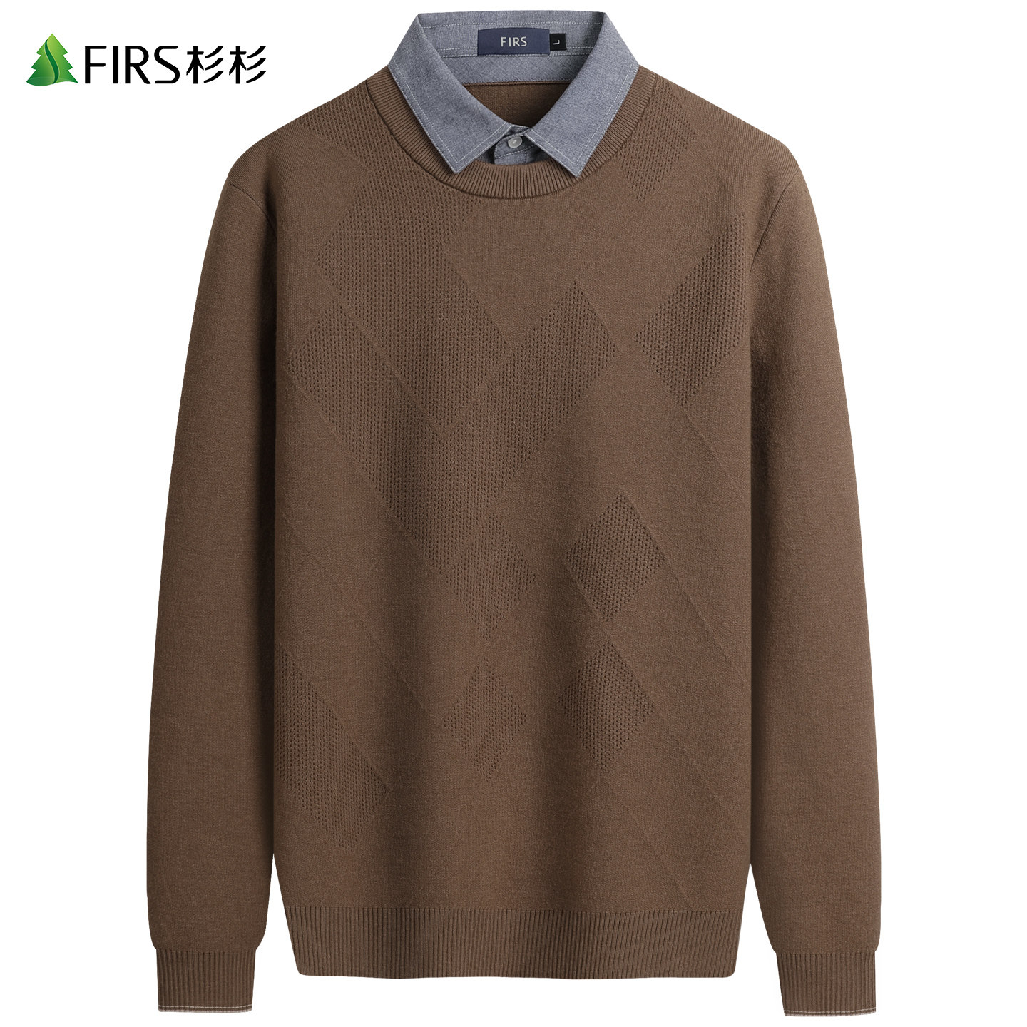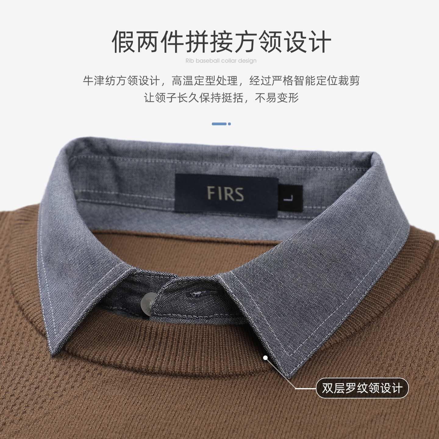 【假两件】杉杉衬衫领毛衣男2025冬季新款商务肌理休闲加厚针织衫