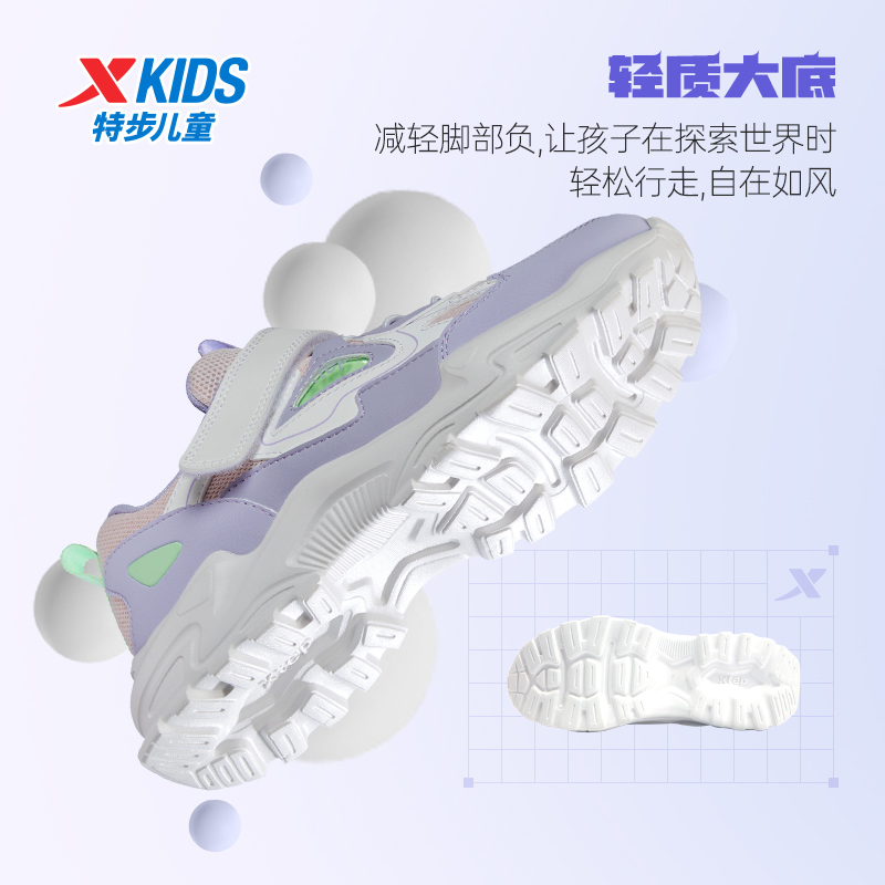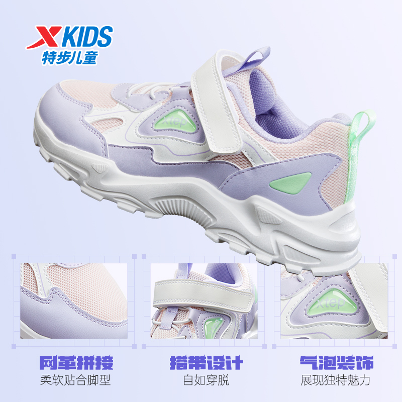 特步童鞋春秋新款儿童运动鞋大童网面透气魔术贴防滑女童跑步鞋子