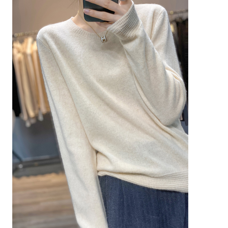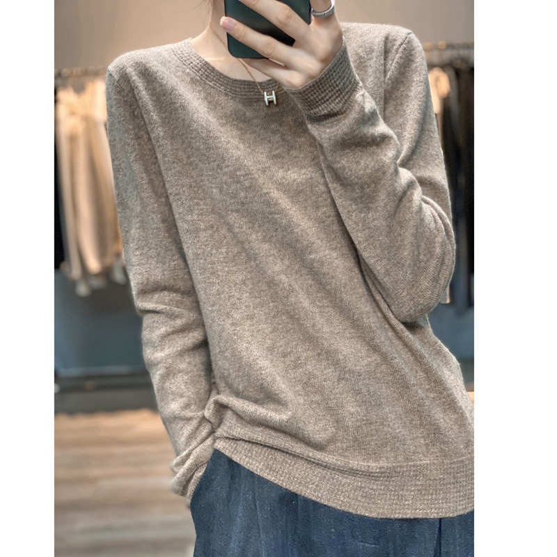 2023新款100羊绒衫秋冬圆领针织打底衫修身内搭羊绒衫女大码毛衣