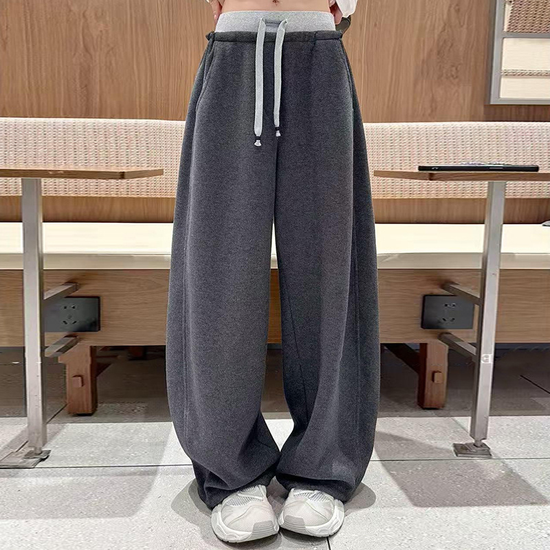 韩版高腰拼接时尚休闲裤卫裤女秋冬加绒垂感宽松显瘦阔腿裤直筒裤