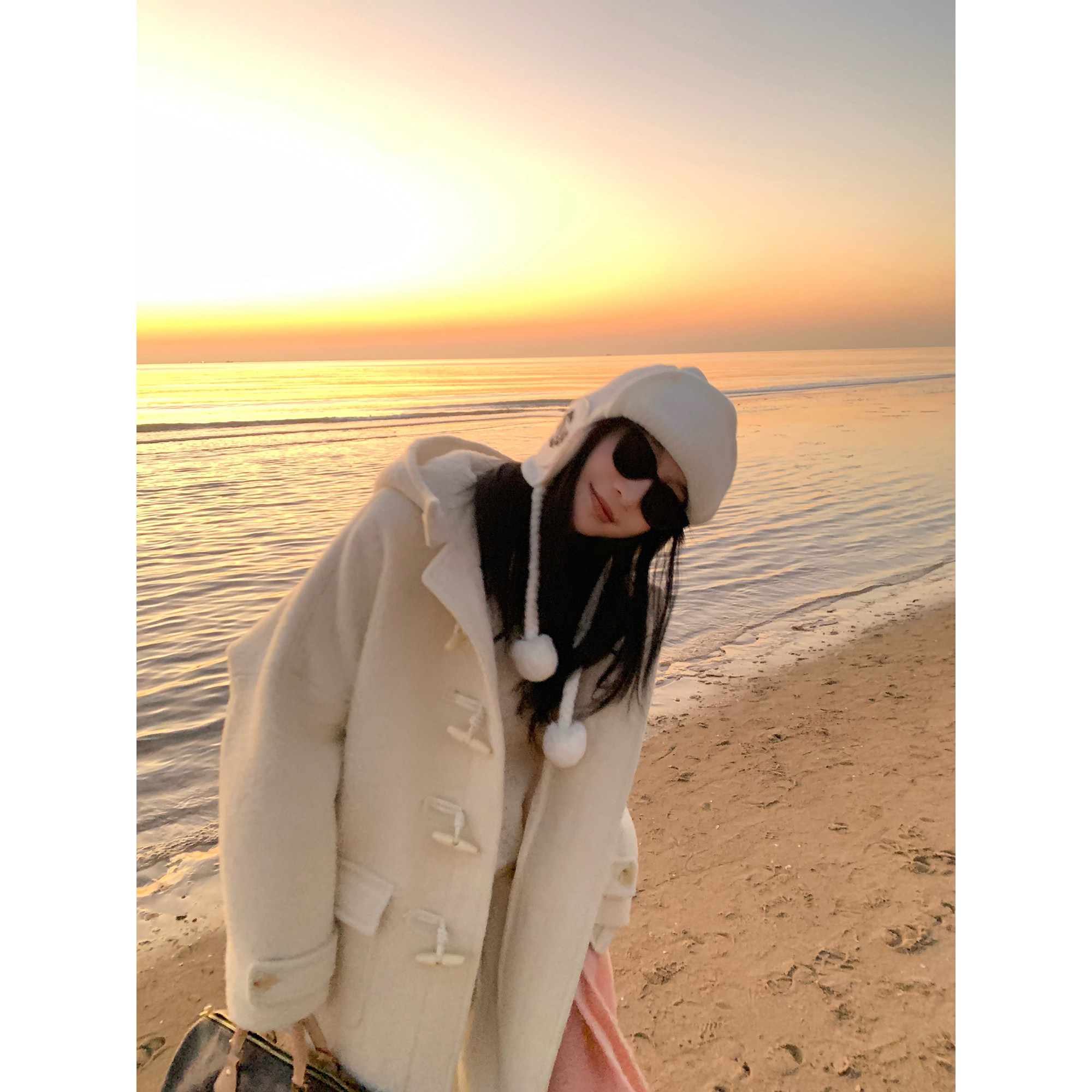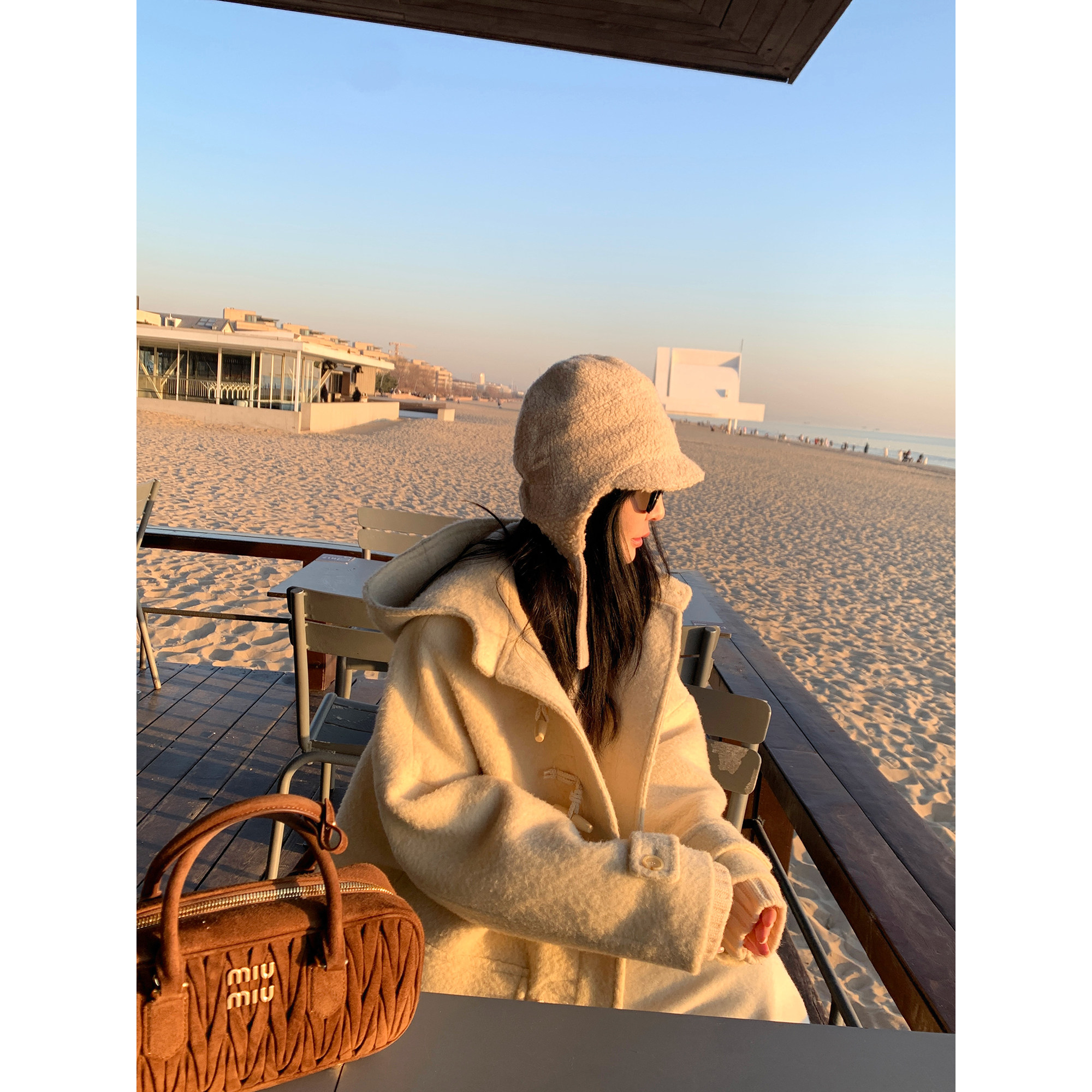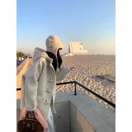 大小姐77 苏力羊驼毛拉绒柔软蓬松牛角扣宽松中长款大衣厚外套