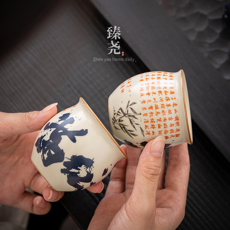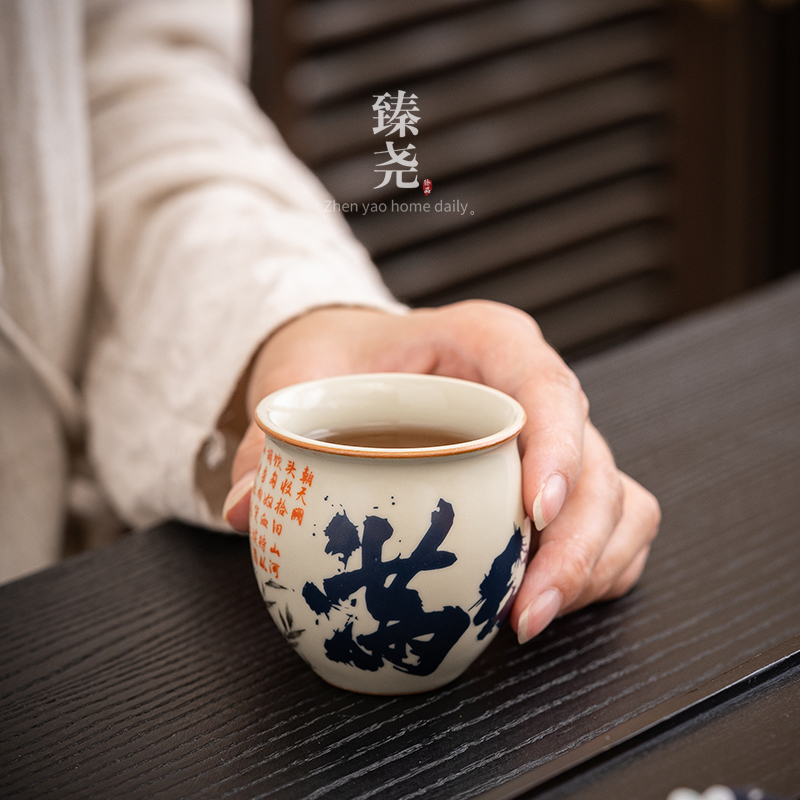 汝窑满江红束口杯家用陶瓷功夫茶具个人专用茶杯高档品茗杯主人杯