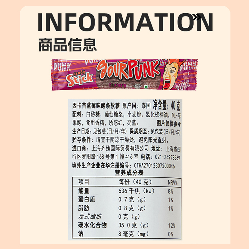 泰国进口sourpunk因卡普酸条软糖糖果可乐草莓蓝莓苹果味零食
