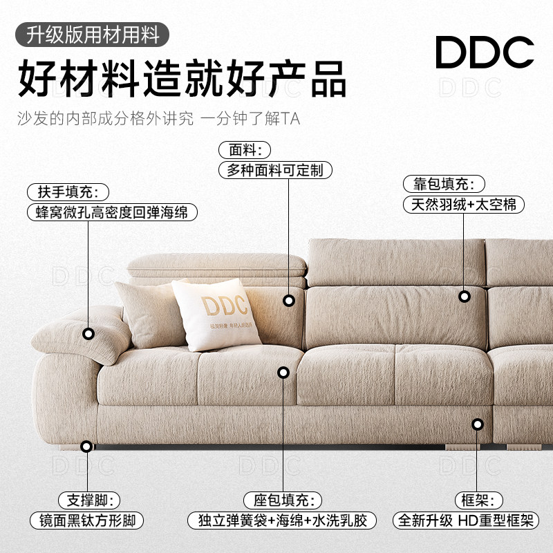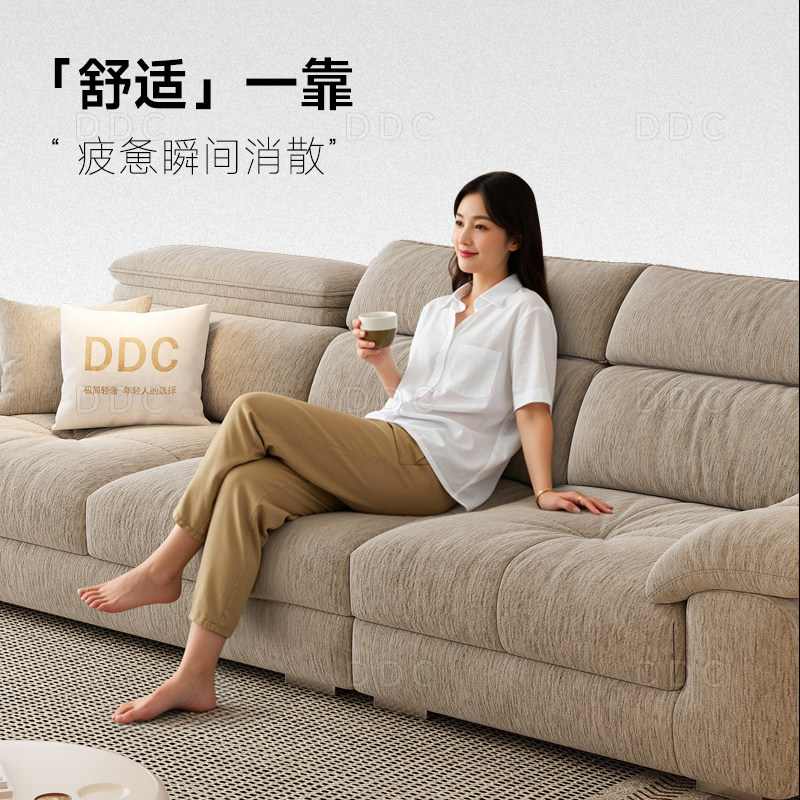 DDC奶油风可拆洗布艺沙发小户型客厅新款现代简约云朵沙发棉麻