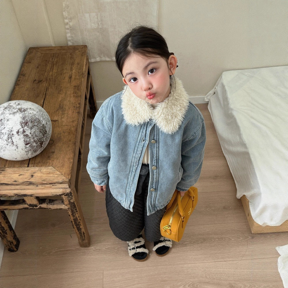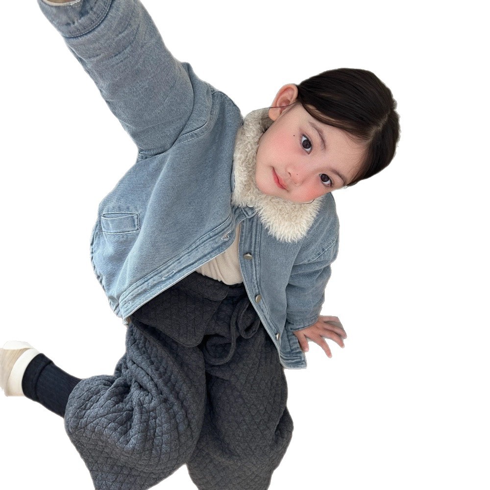 韩版童装2025冬季新款女童气质毛领保暖外套儿童加绒休闲牛仔外套