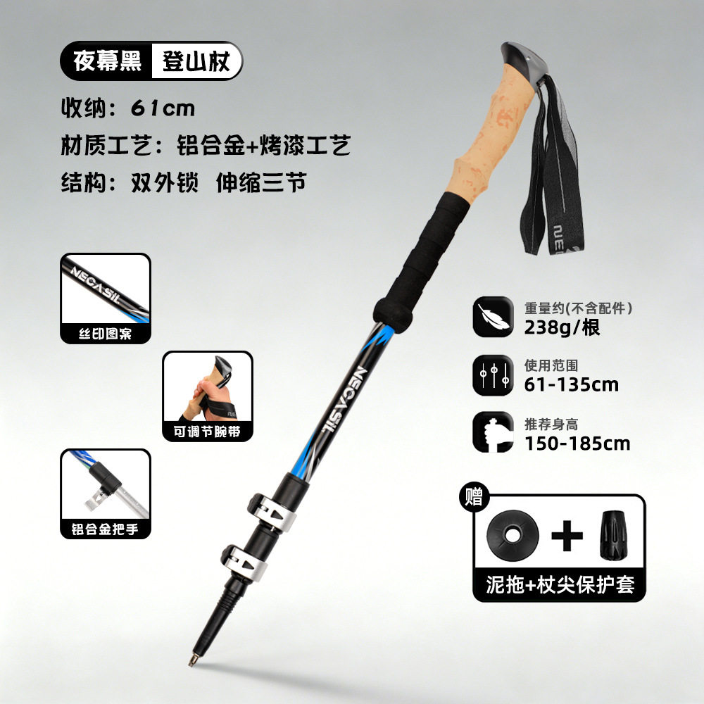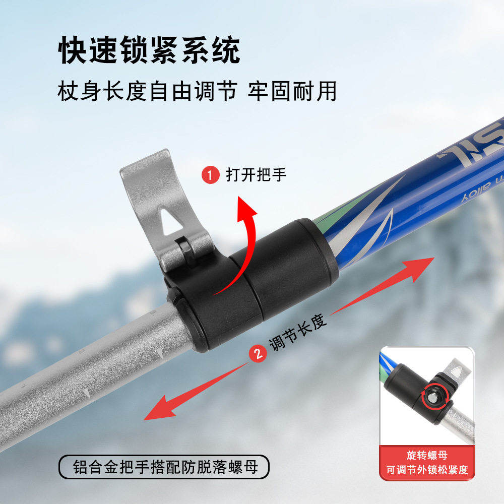 铝合金伸缩登山杖金属外锁超轻便携爬山徒步手杖拐杖专业徒步装备