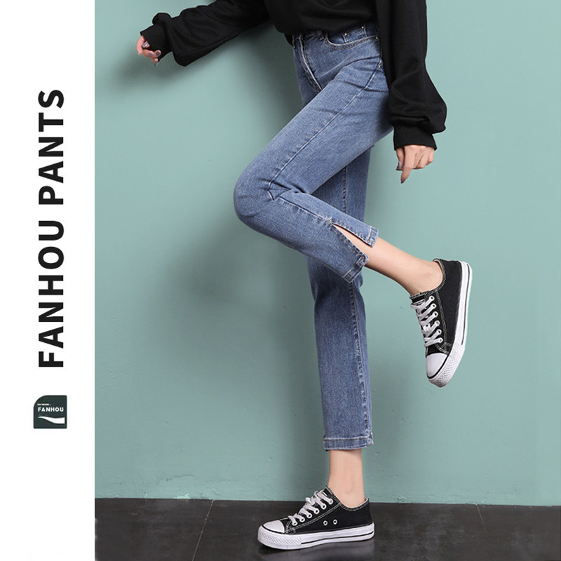 145八分小个子松紧牛仔打底裤女外穿薄款2021新款高腰小脚九分150