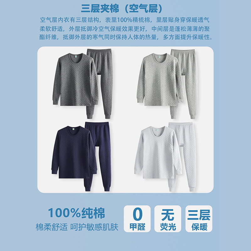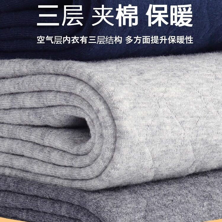 AB内衣纯棉三层保暖套装男士秋冬圆领中厚款打底秋衣秋裤棉毛衫裤
