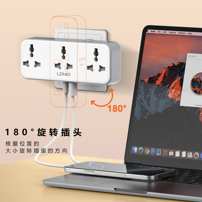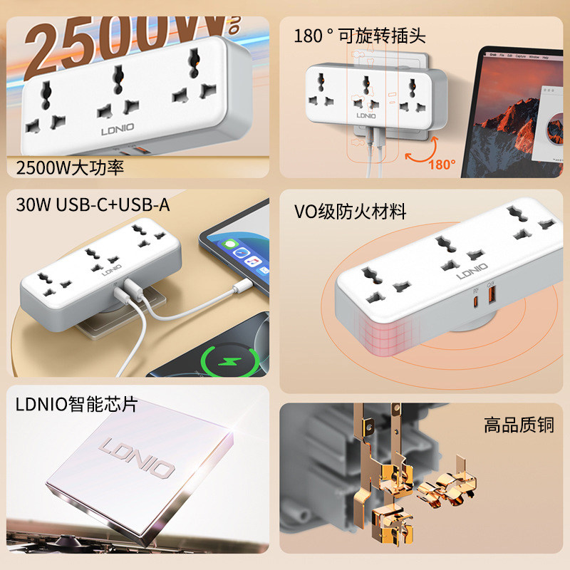 LDNIO多功能英标排插座接线板pd超级快充转换插头180°可旋转换器