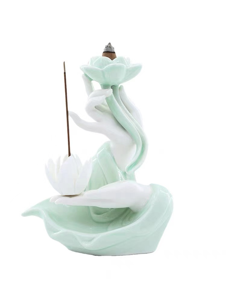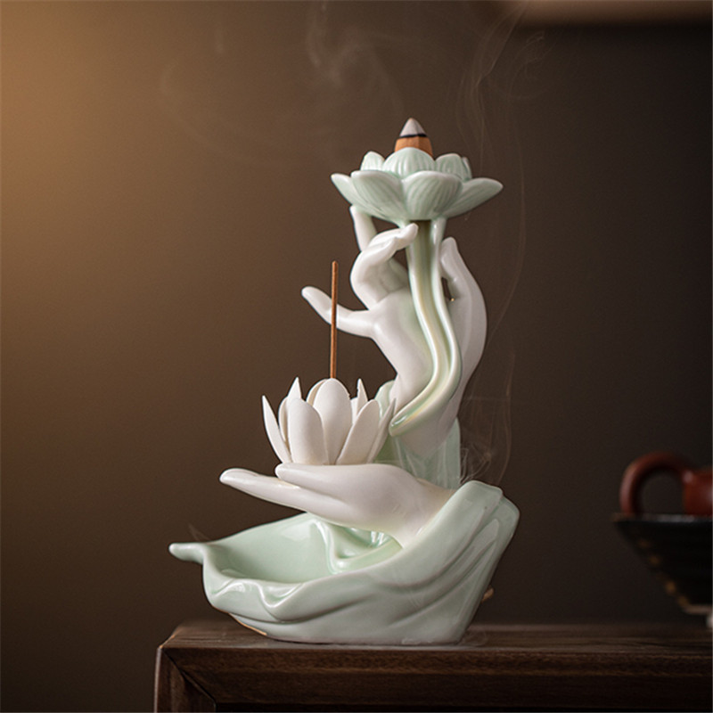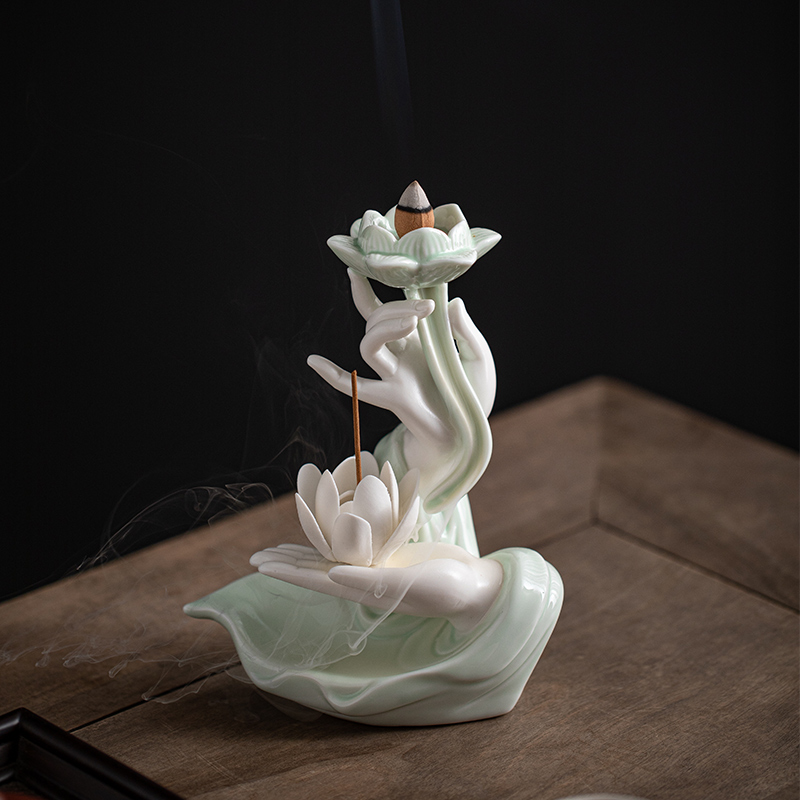 创意陶瓷佛手莲花倒流香香炉家用室内复古檀香炉熏香炉香薰炉摆件