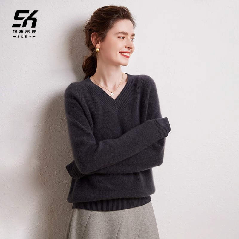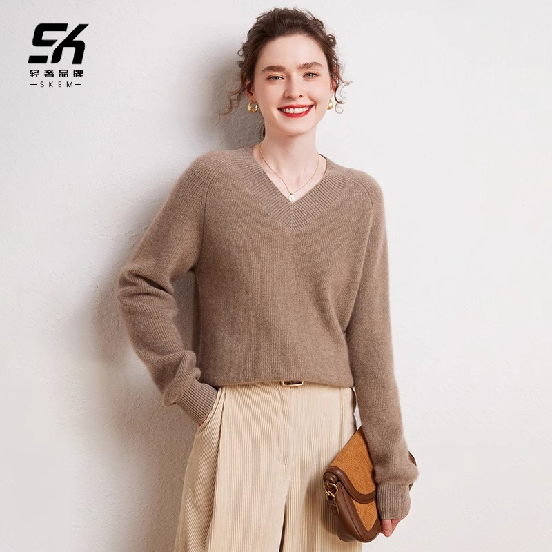 鄂尔多斯市羊绒衫女新款秋冬V领羊绒加厚宽松毛衣针织保暖打底衫