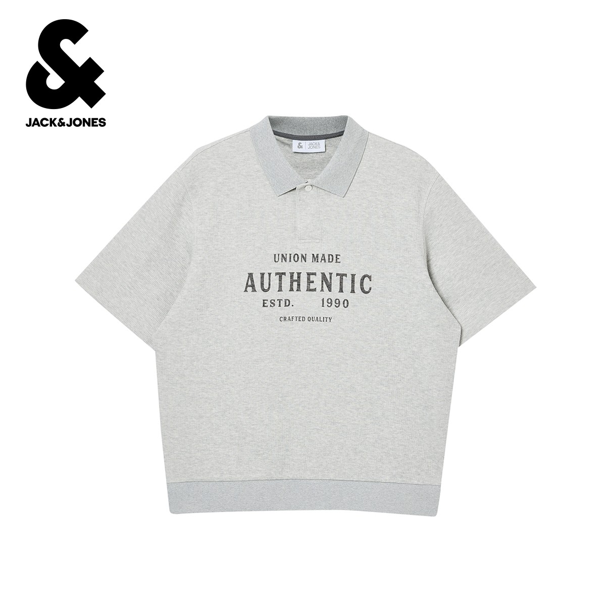杰克琼斯男装满印提花直筒日常休闲舒适百搭翻领polo衫短袖T恤