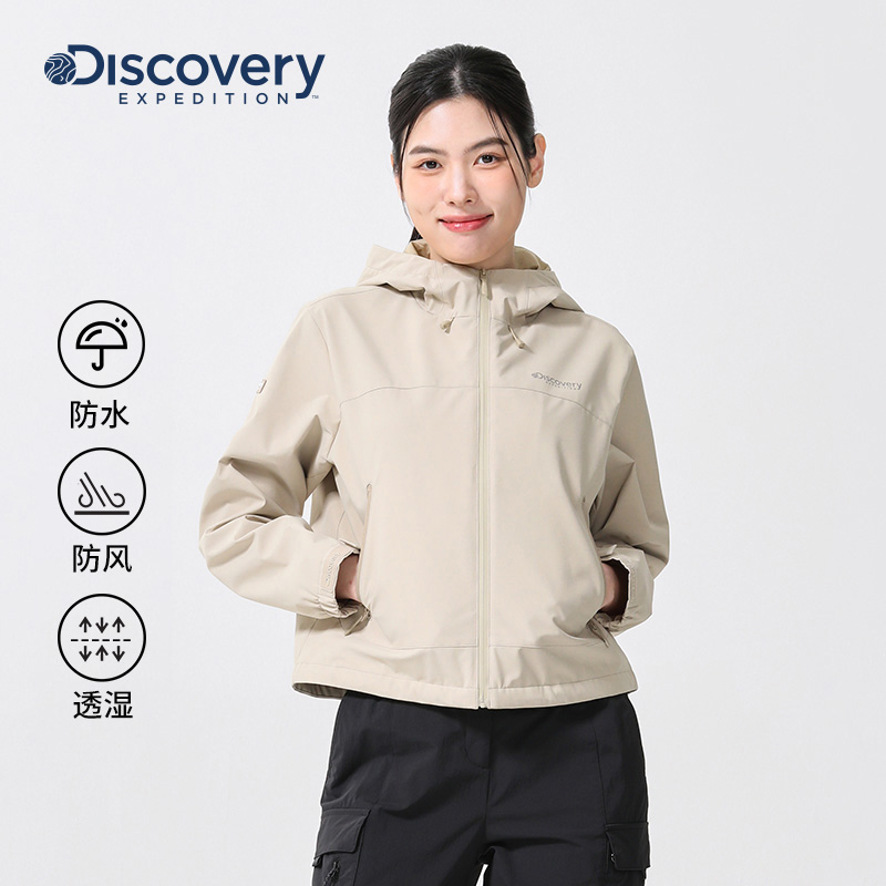 Discovery探索山系户外防水透湿夹克短款轻薄防晒外套女春秋