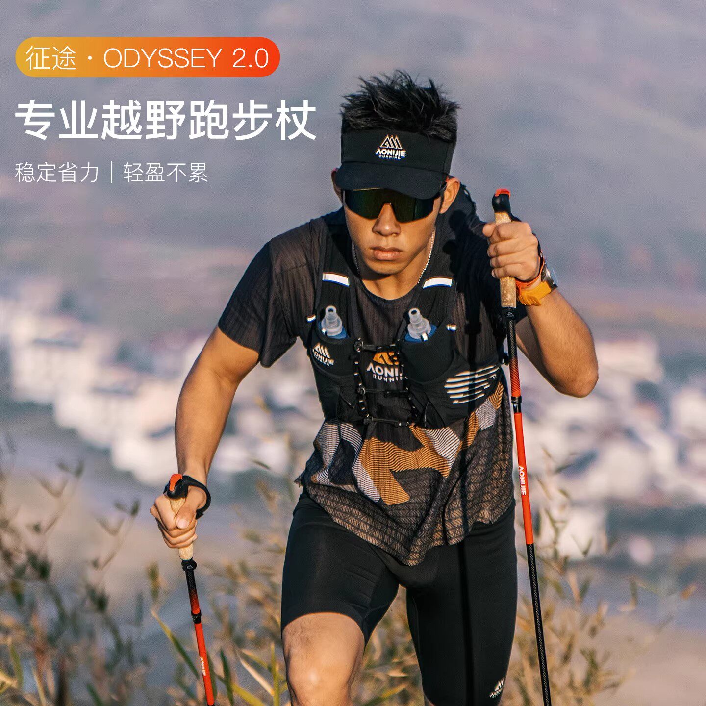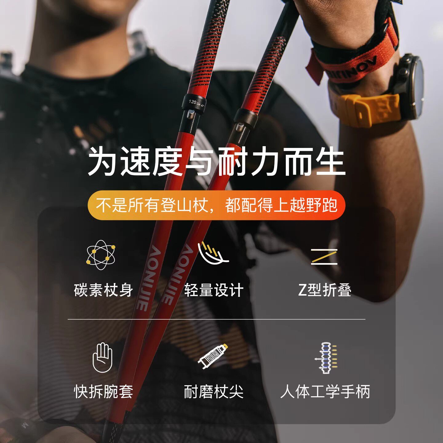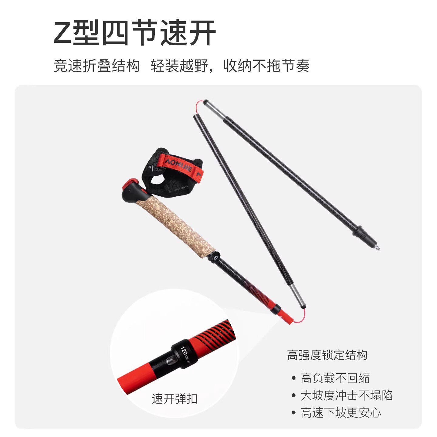 奥尼捷碳纤维登山杖碳素超轻折叠手杖专业户外越野跑步杖徒步装备
