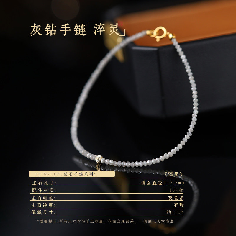 可卿珠宝 淬灵 钻石手链女18k金灰钻钻串珠手串正品礼物