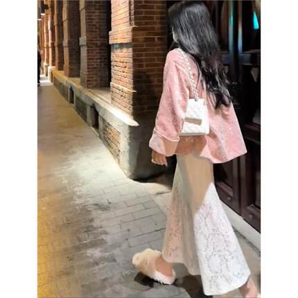优雅温柔风百搭白色鱼尾蕾丝裙2025秋季新款洋气氛围感显瘦半身裙