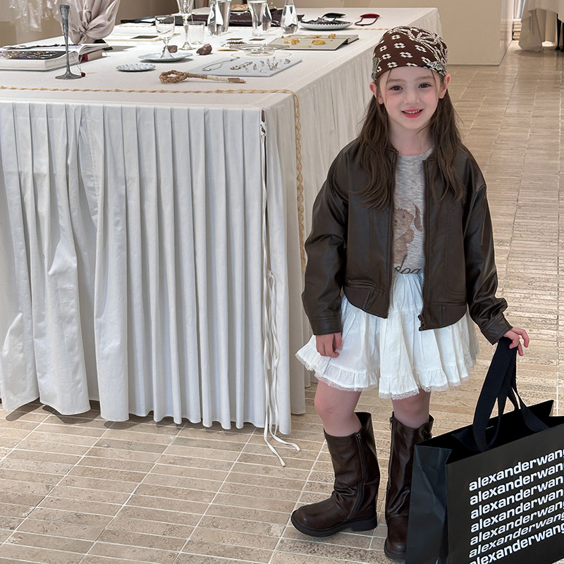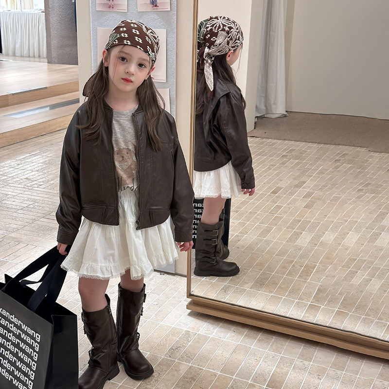 中大女童帅气个性短款夹克上衣女孩皮衣外套儿童秋装韩版休闲上衣