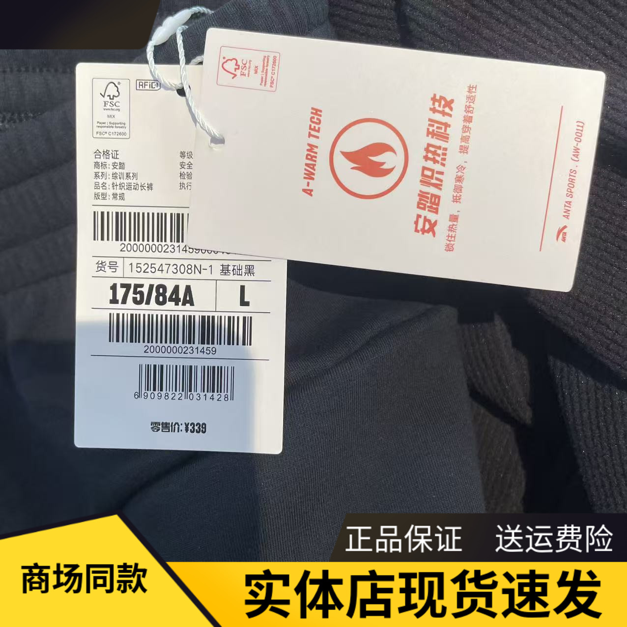 安踏加绒运动长裤男跑步针织卫裤