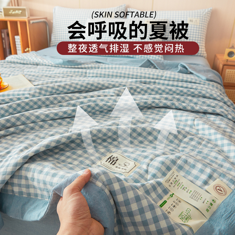 新疆棉花被夏被夏凉被单双人可机洗空调被夏季薄款被子被芯四件套