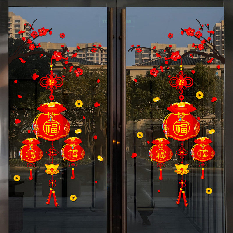 2026新年装饰贴画马年过年布置春节新款静电贴橱窗玻璃门贴纸窗花