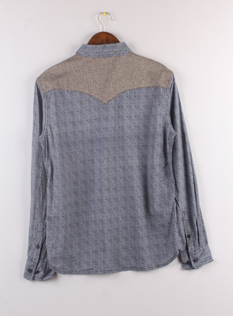 春秋季AS男装拼接材质特色款长袖翻领衬衫