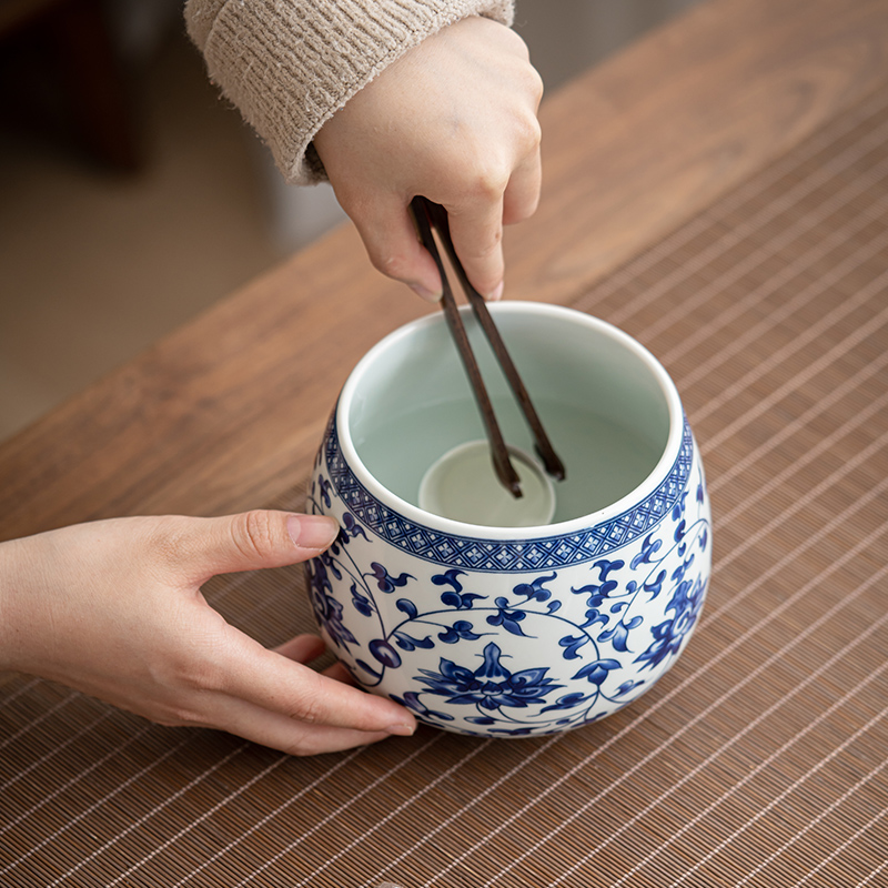 青花瓷茶渣缸家用大号建水水盂废水缸国风功夫茶具配件陶瓷茶洗