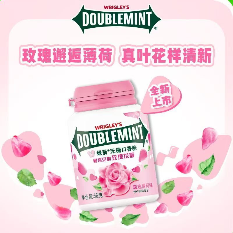 绿箭口香糖薄荷糖脆皮软心糖口气糖果小零食薄荷味茉莉瓶装盒装