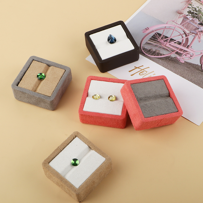 珠宝收纳盒宝石盒子戒面裸石pu皮珍珠绒钻石托彩宝裸钻盒展示道具