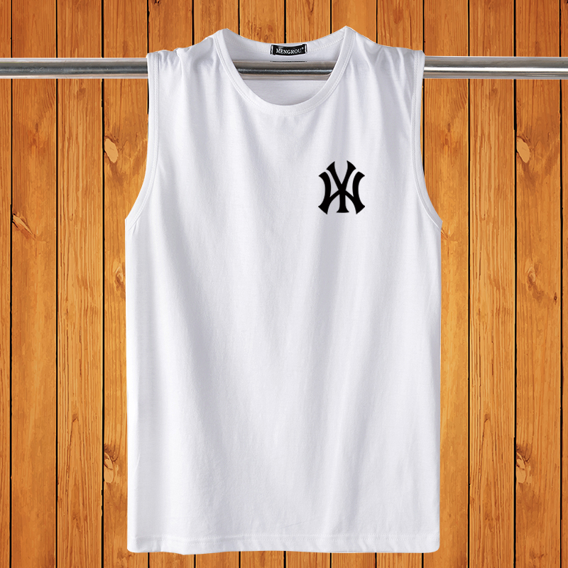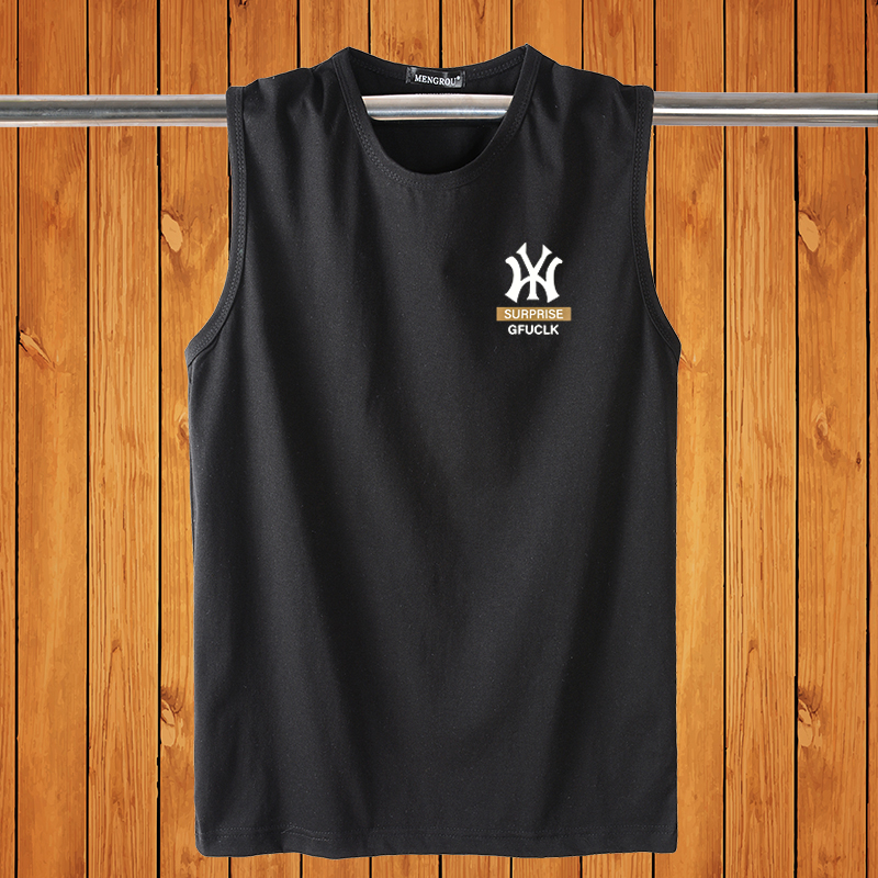 夏季纯棉无袖T恤男士加大码宽松运动宽肩汗衫透气背心胖子坎肩潮