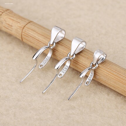 925镀银吊坠扣水晶斜孔玉佛观音琥珀玉佩挂件扣头diy玉扣配件银扣