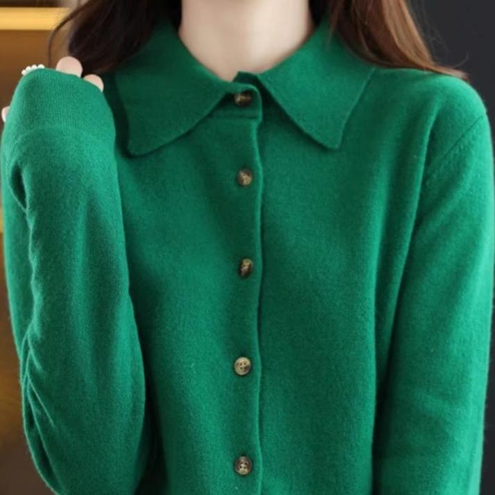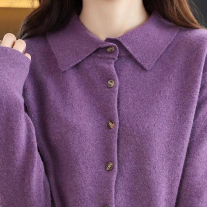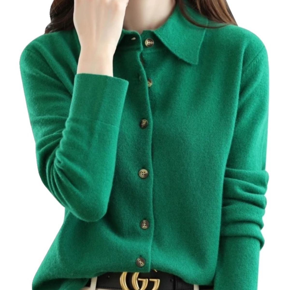 断码清仓新24秋季外穿开衫女polo领外搭宽松长袖毛衣翻领针织外套
