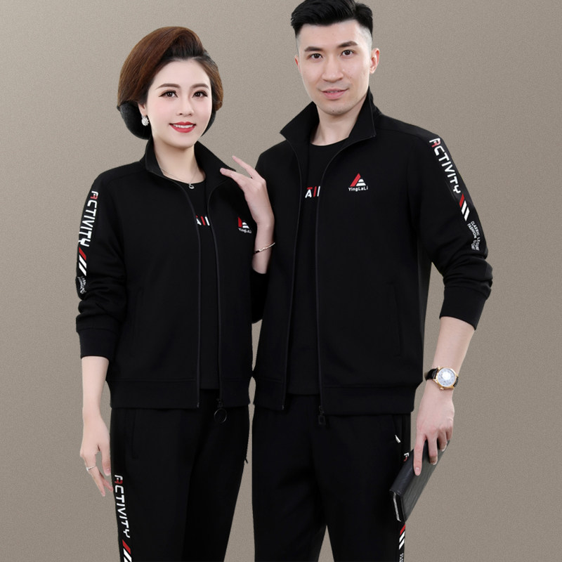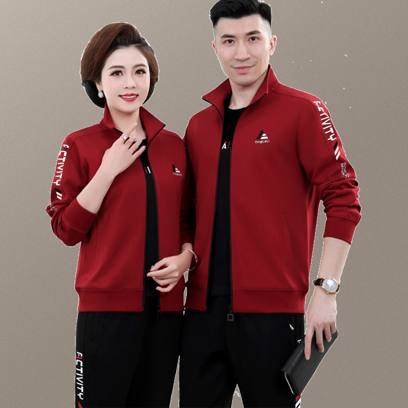 中年情侣运动套装秋冬团购中老年男女爸爸妈妈加绒加厚休闲运动服