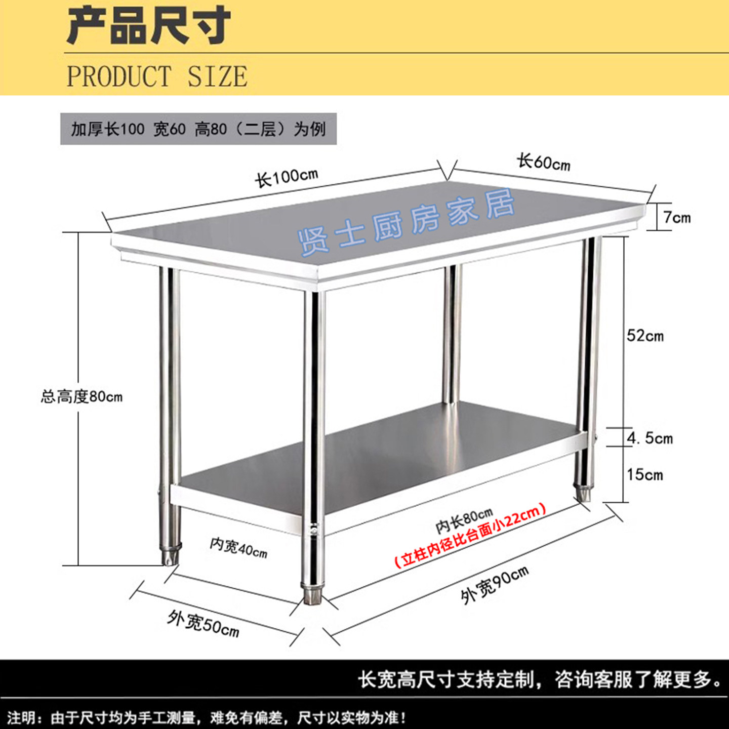 厨房加厚不锈钢双层工作台切菜桌操作台两层打荷打包台拆装工作桌