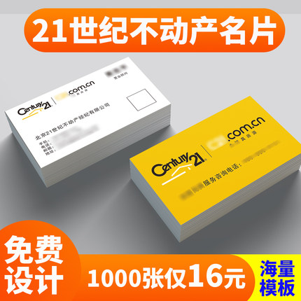 铜版纸名片制作印刷免费设计高档21世纪不动产二维码卡片双面打印
