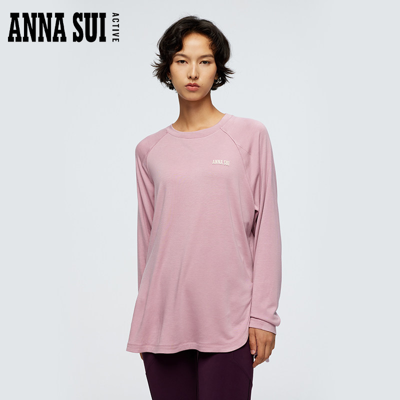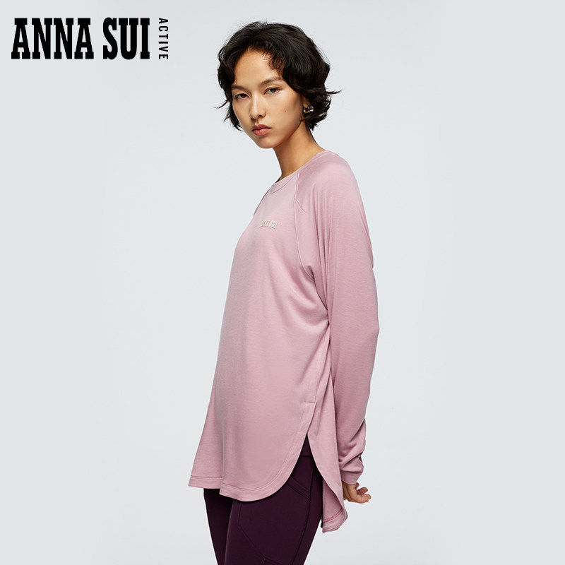 ANNA SUI安娜苏运动 起司绒前短后长开叉下摆锁温长袖罩衫亲肤