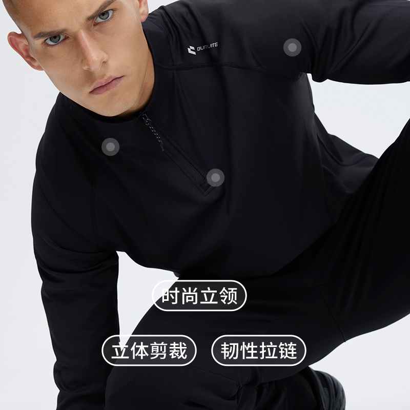 健身衣服男女款春秋季速干长袖跑步运动骑行服训练立领半拉链卫衣