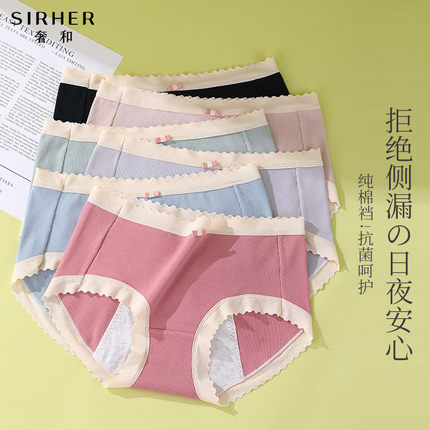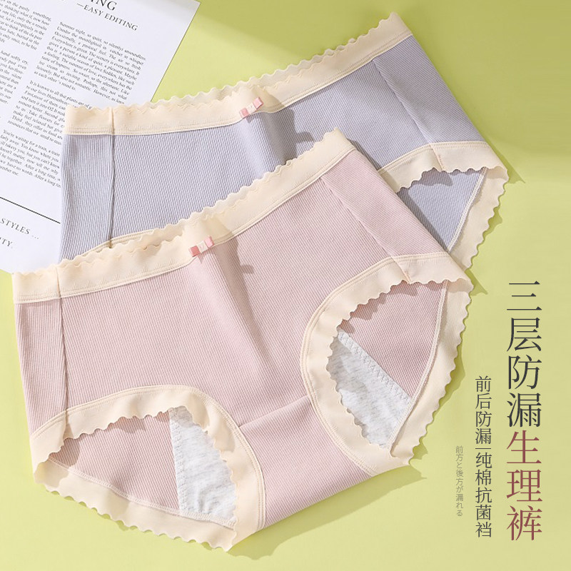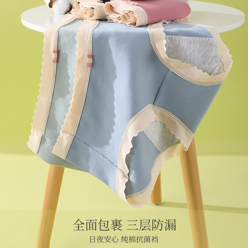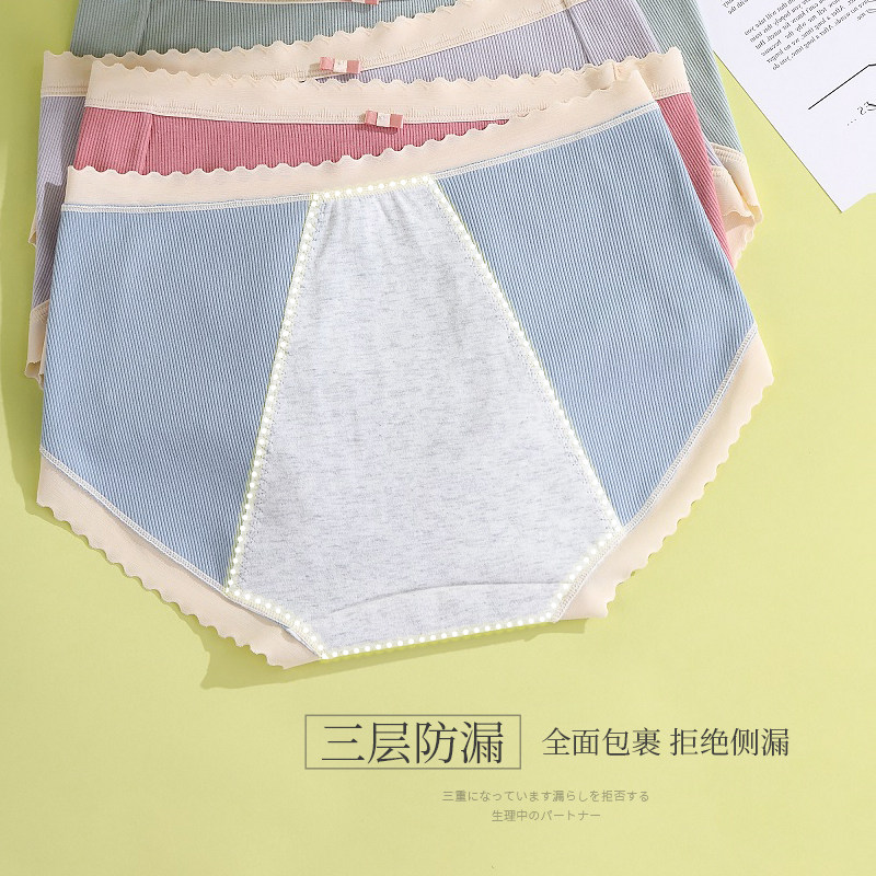 奢和日系螺纹棉生理内裤女士中腰三层防侧漏月经期卫生裤3条装