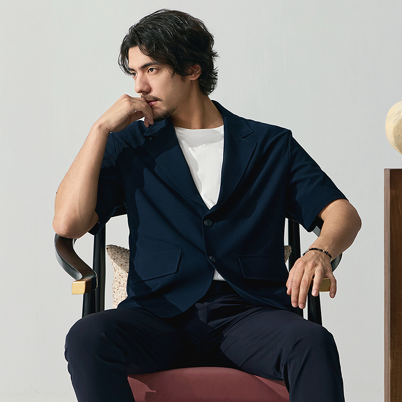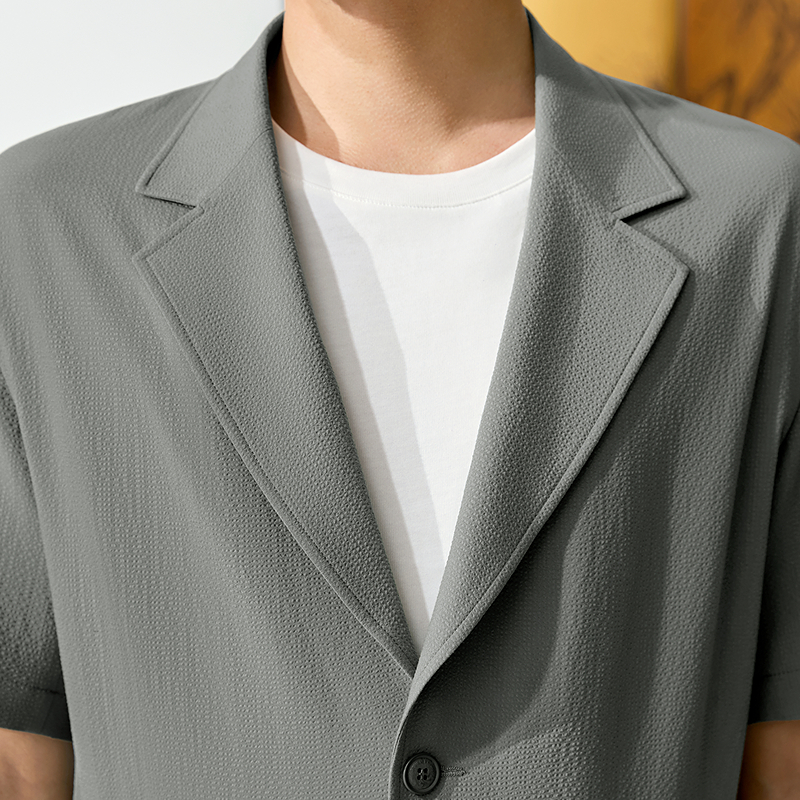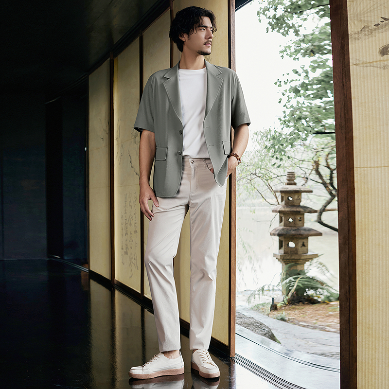 【谢震业同款】柒牌短袖西装外套男春夏新款宽松中华立领休闲西服