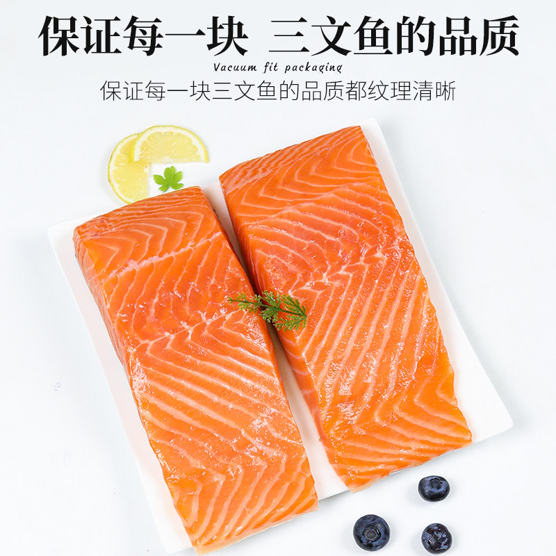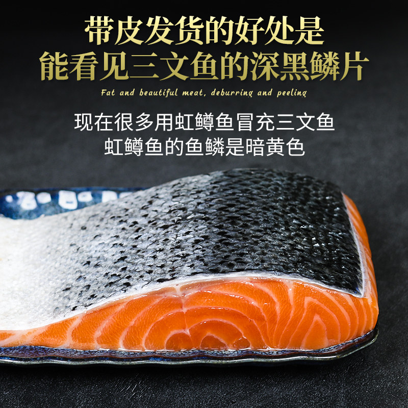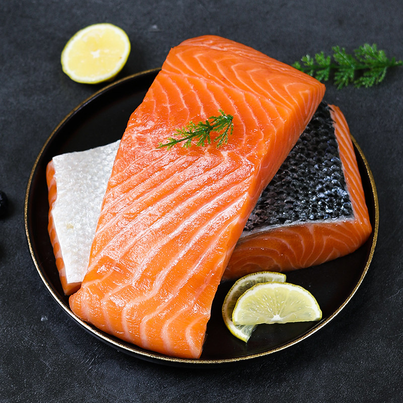 挪威三文鱼新鲜整块中段刺身带皮400g整条切鲑鱼生鱼片顺丰包邮