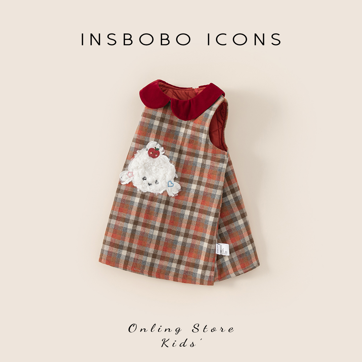 INSbobo儿童卡通格子无袖连衣裙