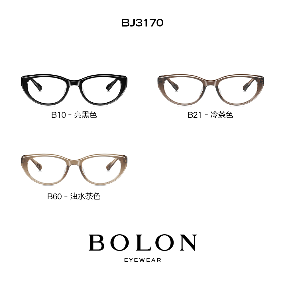 BOLON暴龙近视眼镜框猫眼冷茶色镜架2025年黑框眼镜女正品BJ3170
