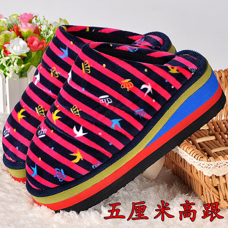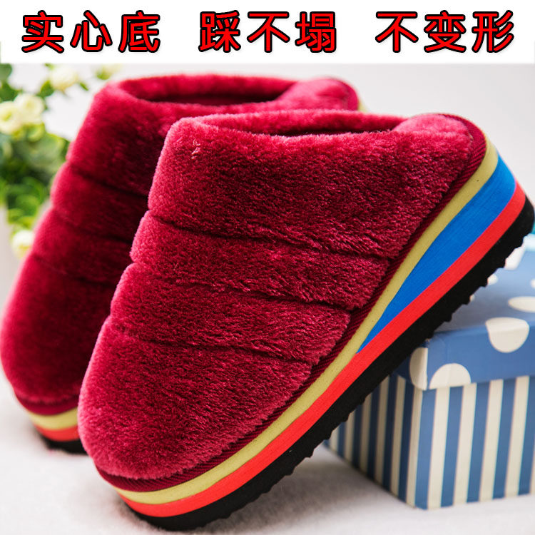 冬季棉拖鞋女加厚底高跟坡跟防滑居家室内泡沫底保暖手工棉拖鞋