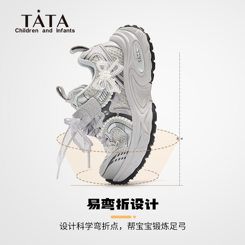 TATA童鞋儿童银色老爹鞋2025秋季新款女童运动鞋轻便减震跑步鞋子