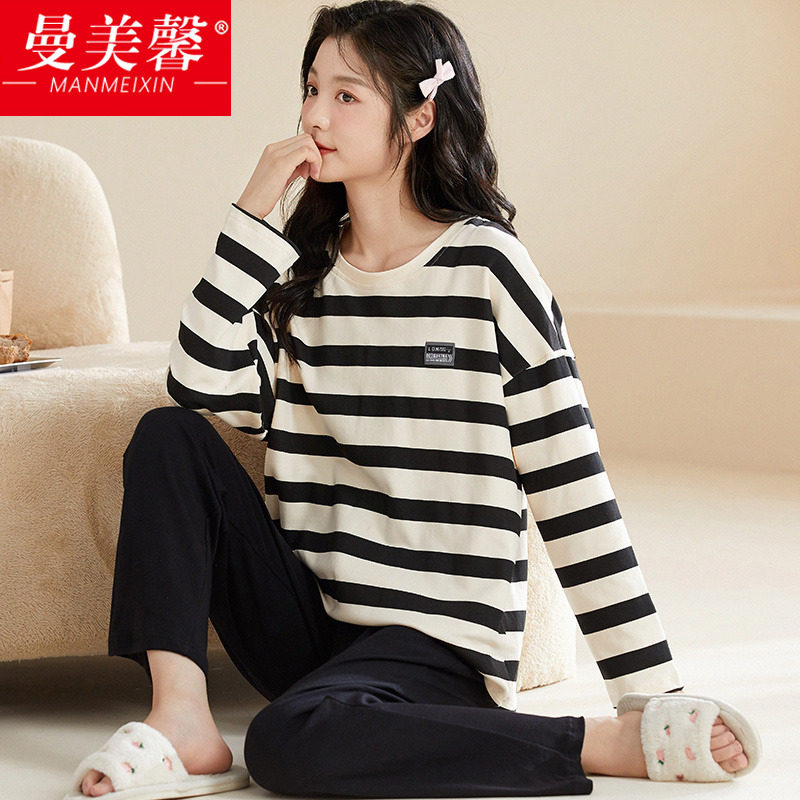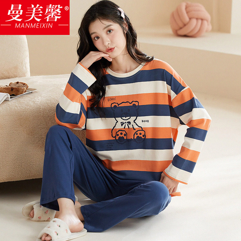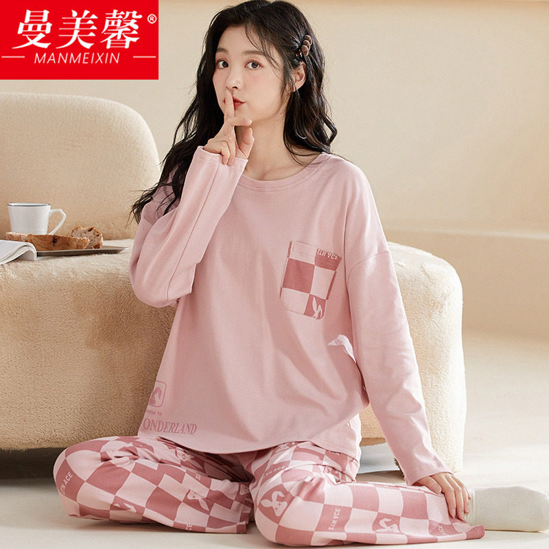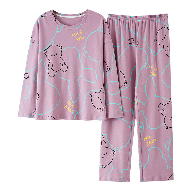 春秋大码睡衣女纯棉加肥加大200斤胖mm圆领长袖家居服套装可外穿