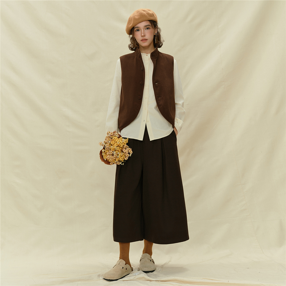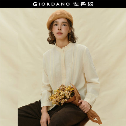 设计师款佐丹奴褶皱肌理纯棉绣花花边立领宽松长袖衬衫女18345706