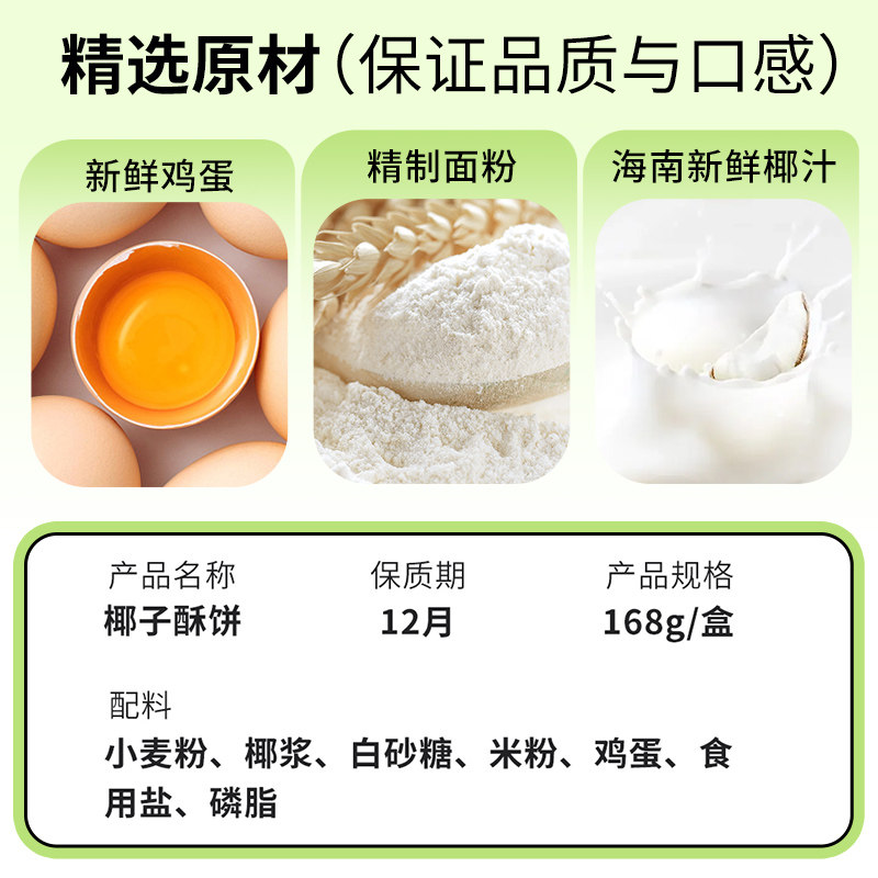 品香园海南特产椰子酥饼168gX3盒脆饼椰子饼椰奶薄饼早餐饼干零食