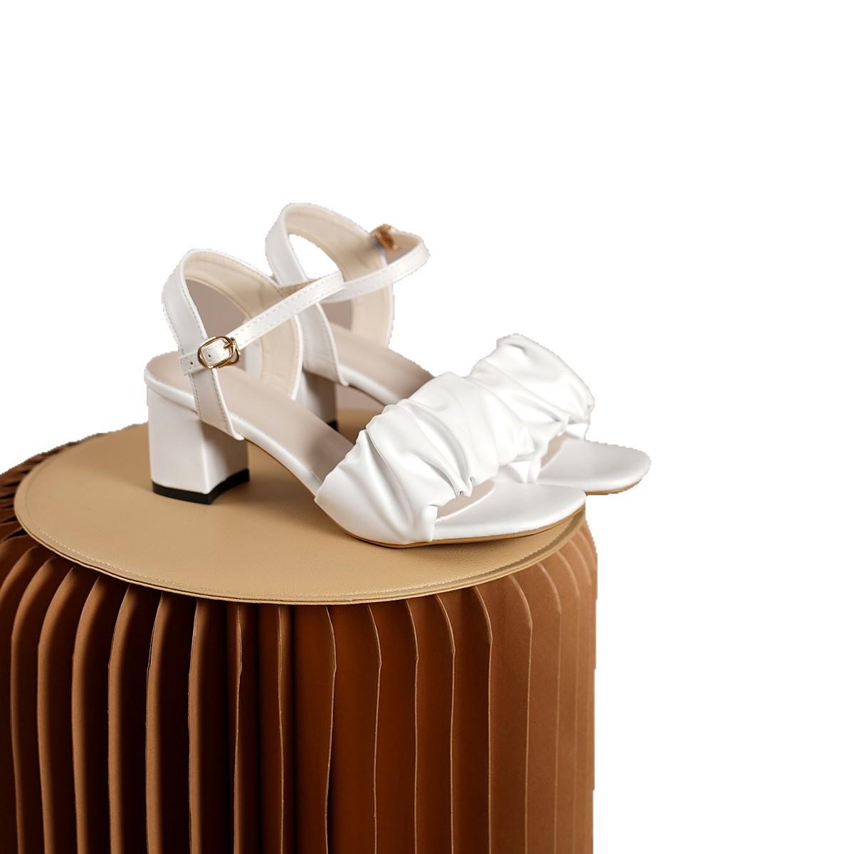一字扣带时装凉鞋女年夏季新款仙女风中跟大码粗跟后空高跟鞋