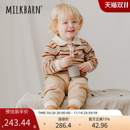 Milkbarn儿童POLO领针织衫宝宝纯棉保暖毛衫婴儿秋季衣服